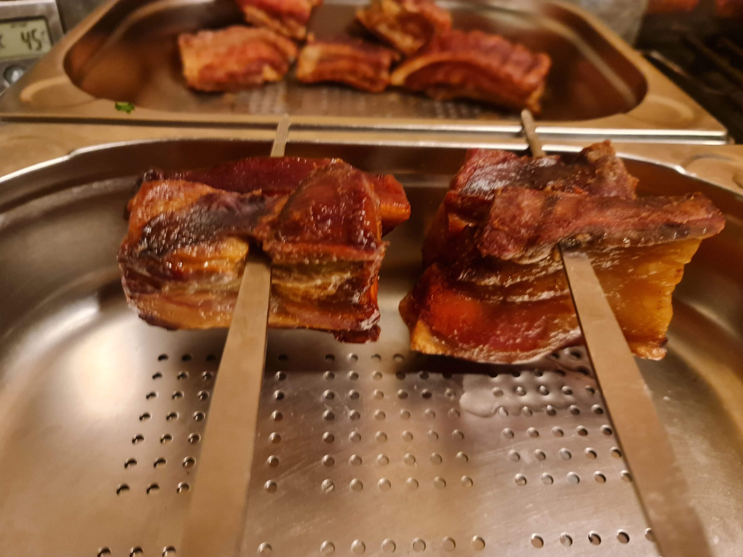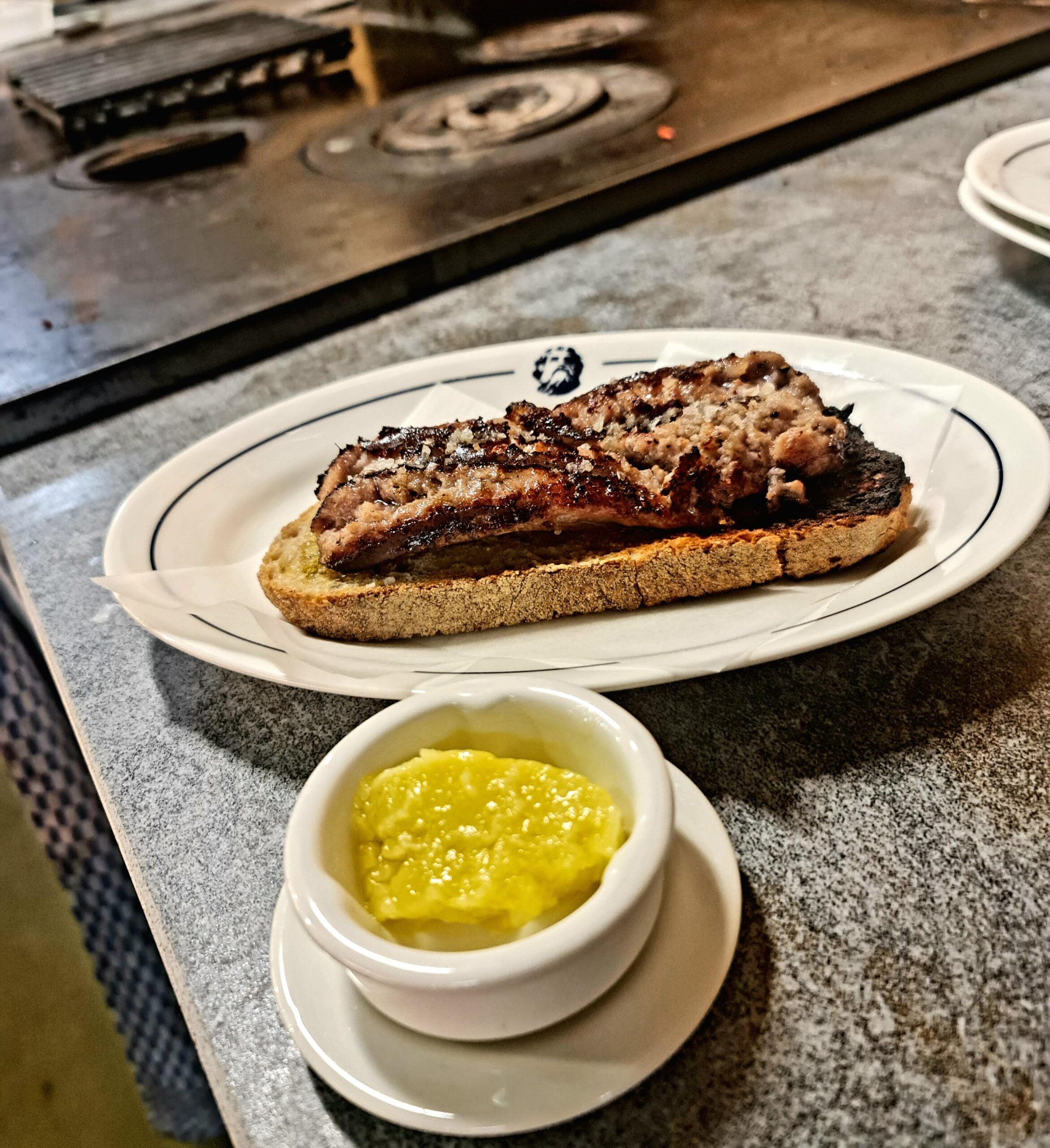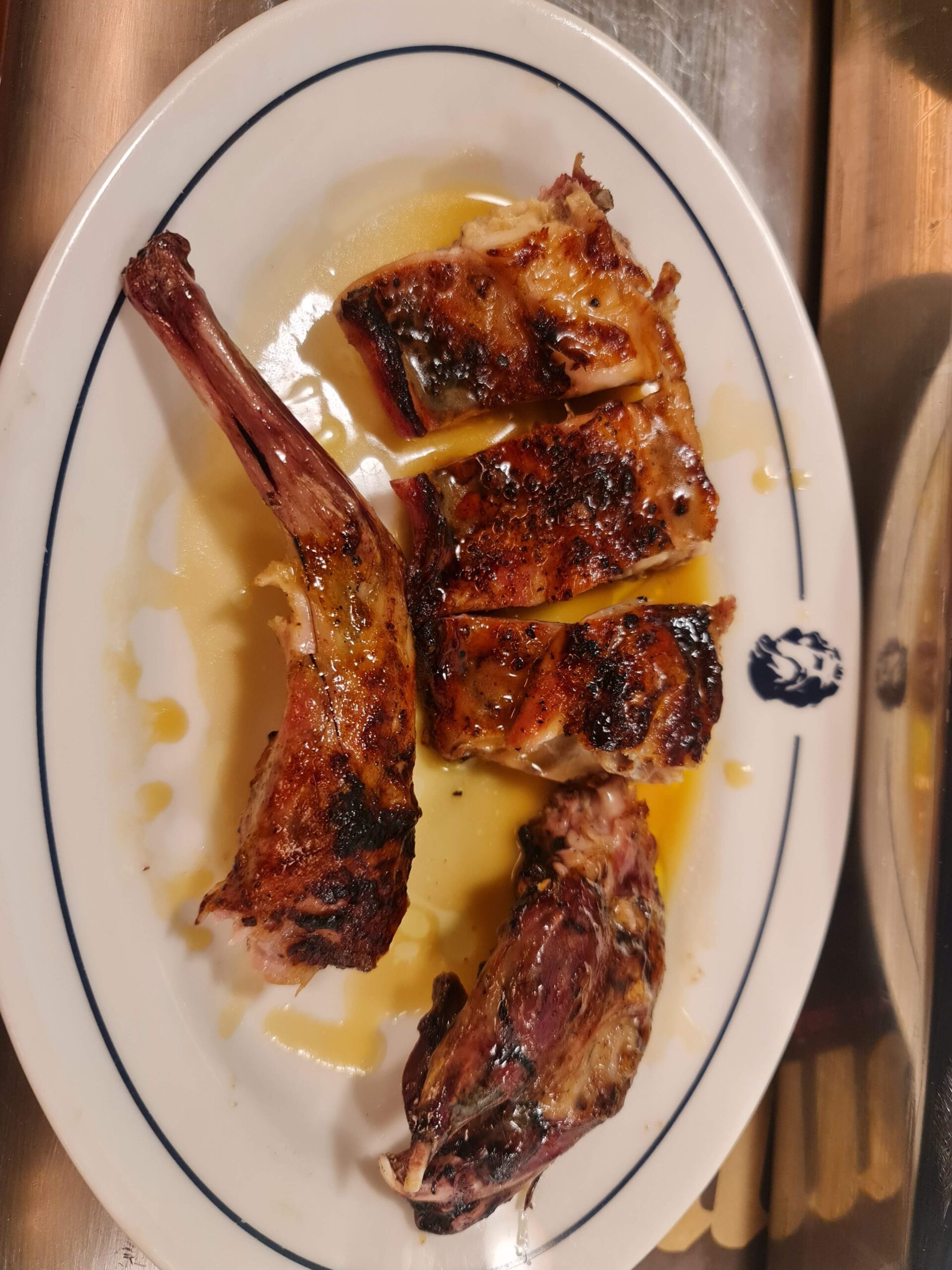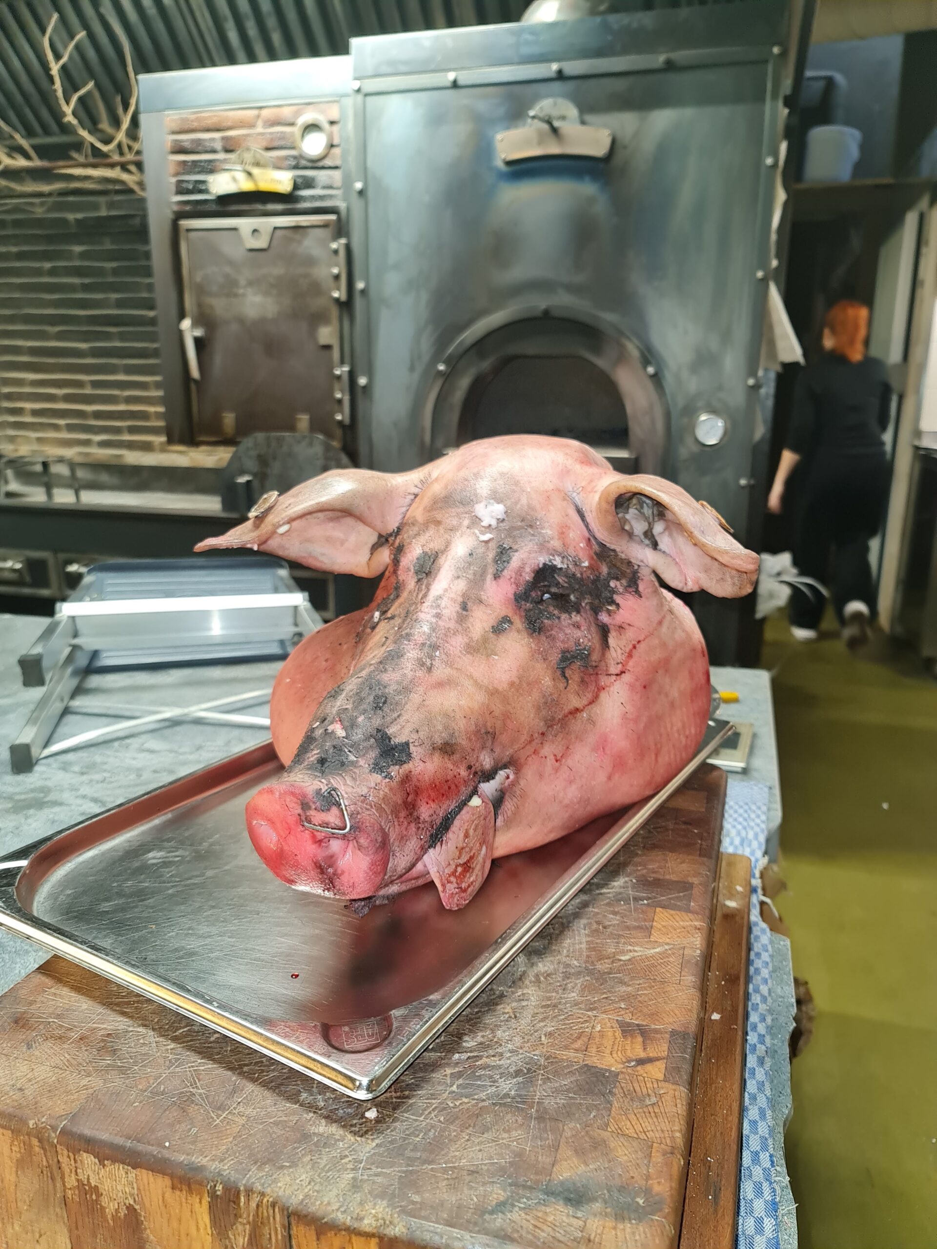 Al fons del local tenim l’asador. Un espai on em fet sorgir l’ànima del local, amb les vigues de ferro i fustes càlides que acompanyen millor un àpat més tranquil. Aquí tot es cuina amb foc d’alçina, roure o olivera. Tenim una cuina econòmica, un forn de llenya, un fumador i unes parrilles per tractar cada aliment amb el que millor l’escaigui.